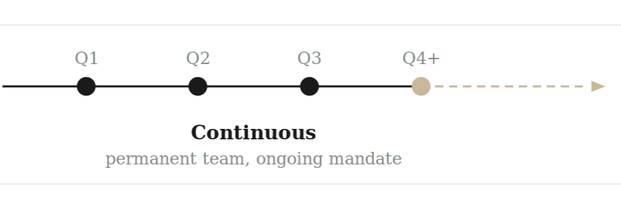 The team shipped three rounds of improvements in the first cycle — changes that were already more stable and durable than most feature releases. At the checkpoint, the sponsor committee voted to continue.